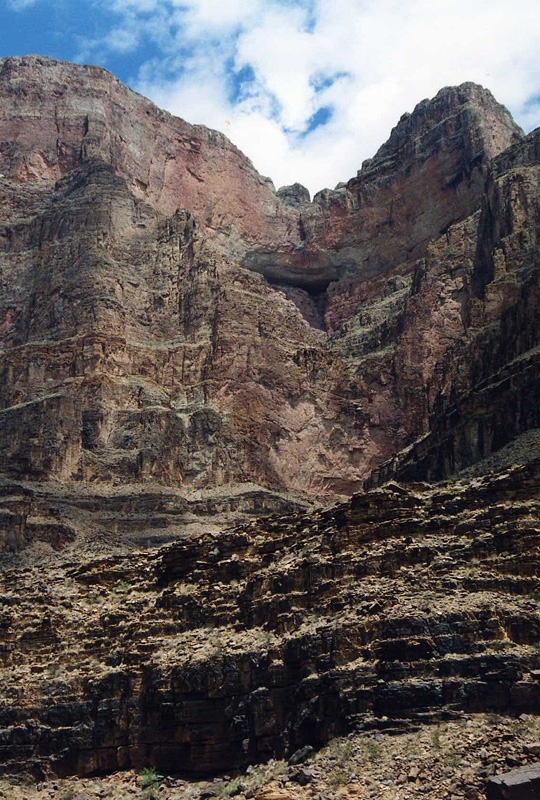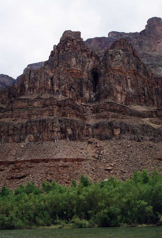 Here is another view of the cave. Note the hoist tower just below the mouth of the cave. In the 1960s, there was an airplane crash here due to the haulage cable. Some fighter jock was flying low in the canyon and hit the cable and sliced his plane in half causing him to crash.