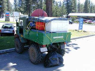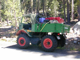 Given the mystique that accompanies the Rubicon trail and the fact that I high centered by 1300L on the Devil's Post pile obstacle just out of Wentworth Springs, it was with no small amount of anxiety that I prepared for this trip. The group planned a whole week on the trail. Since we were to be camping out of my small model 411 Unimog, substantial thought was required to prune the equipment to fit the available space. Even then, not all equipment fit and we had to rely on the kindness of strangers to carry the overflow load. Luckily, Dr. Dan Johnson has sufficient room in his 404 to accommodate my needs.