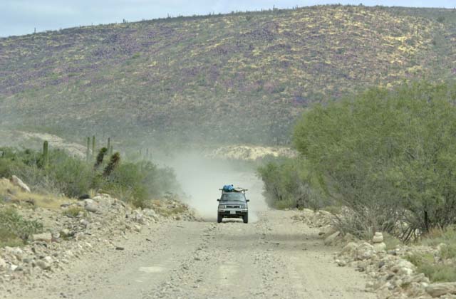 On the road from San Ignacio to Santa Rosalia, there is a area that has one of the steepest parts of the entire highway system. This grade is 12%, nearly twice as steep as any freeway grade in the US. The road is labeled"Cuesta del Infierno" on the signs. The "Grade from Hell" is the literal translation. This grade will get everybody's attention. Steep, narrow, twisty and sharp cliffs with tons of wrecked vehicles. We successfully made it down without incident, but it did require down shifting to 4th gear (out of 8) to keep the speed under control.