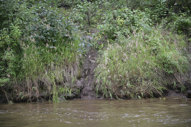 Dan spotted this beaver "slide" on the river bank. The beavers use these routes to gain access to the river from the plateau above.