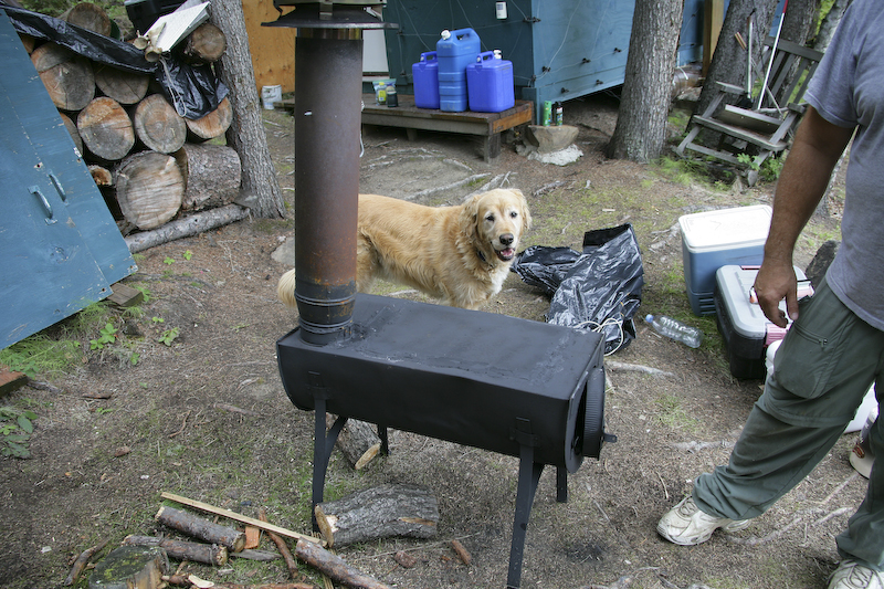 John found and restored this old sourdough stove. This stove was sized for transport on dog sleds. He added the legs.
