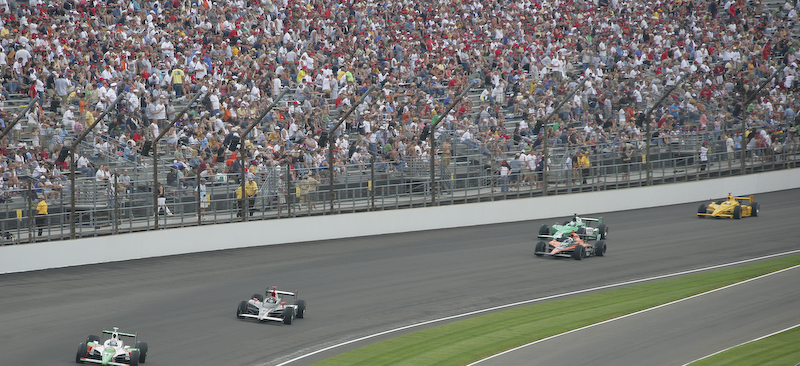 The Indy 500 consists of 200 laps on the oval track. It only takes a few laps before the cars get quite spread out.