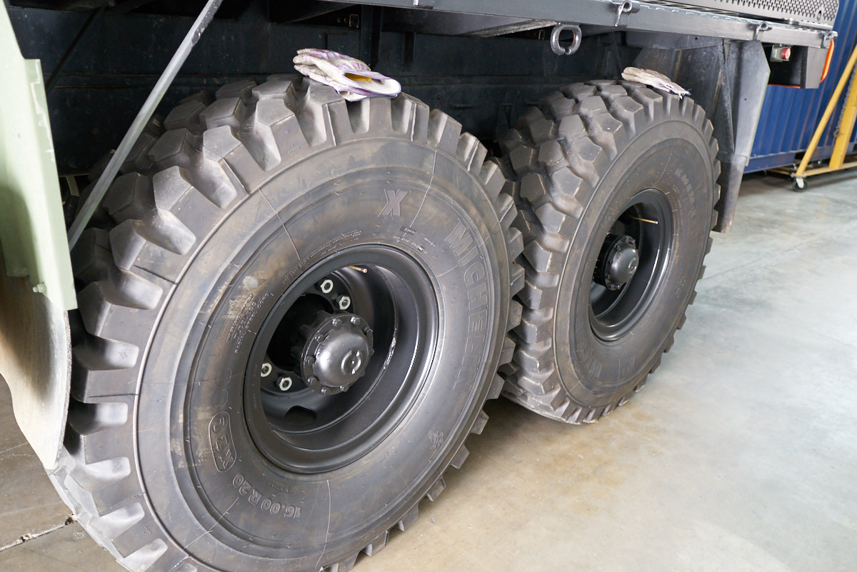 14.00R20 tires were replaced with new 16.00R20 rubber.