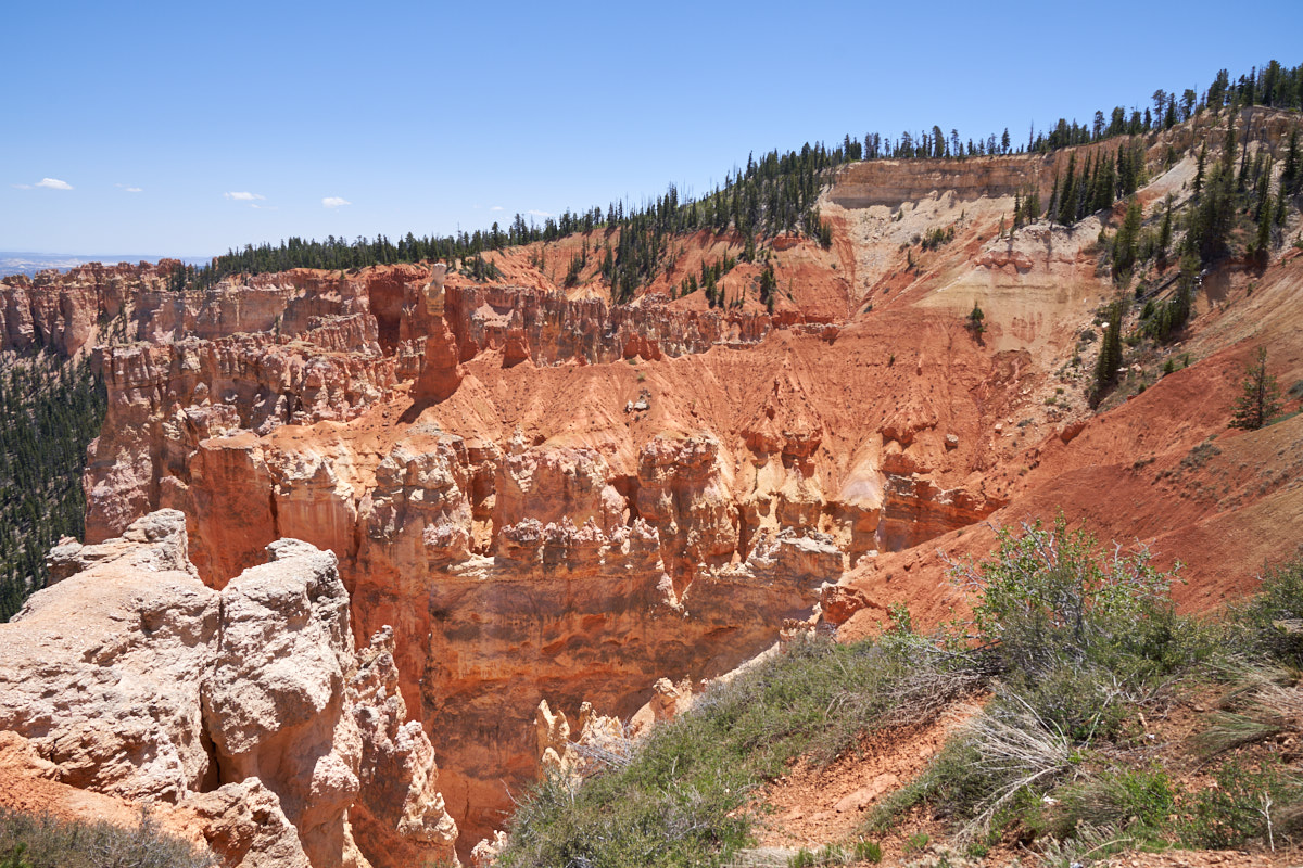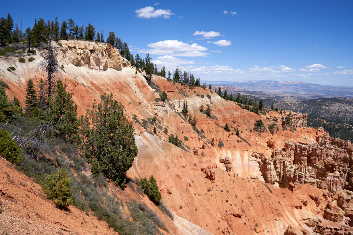 to Bryce the strata changed resulting in steep cliffs with