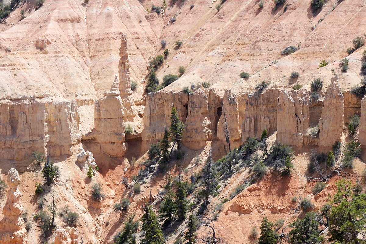 hoodoos eroded into fins in the cliff.