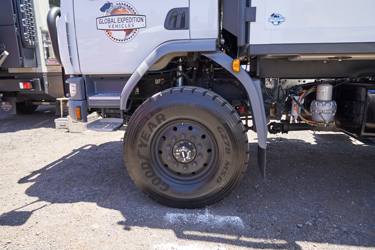runs 426/65R22.5 tires which are wider than the 395/85R20 tires