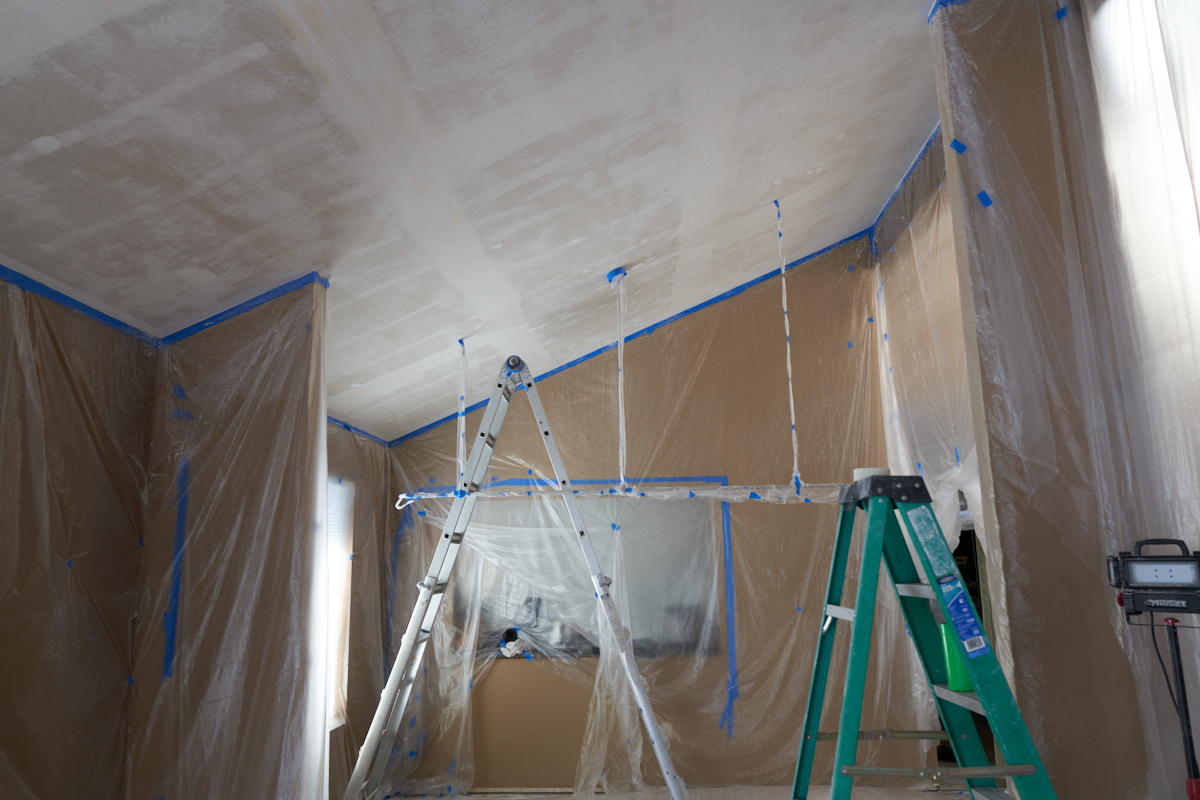 protect the walls from the debris and texture spraying, we