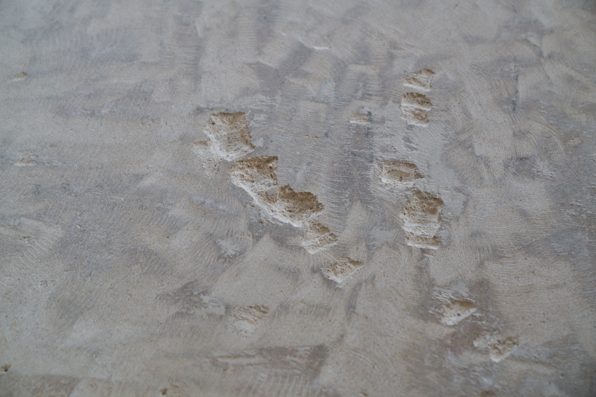 gouges remaining after I ground down the grout mountains.