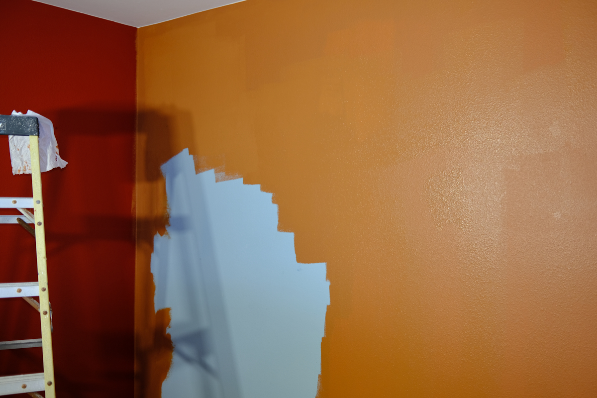 revealing bare concrete, albeit with glue, paint and drywall mud