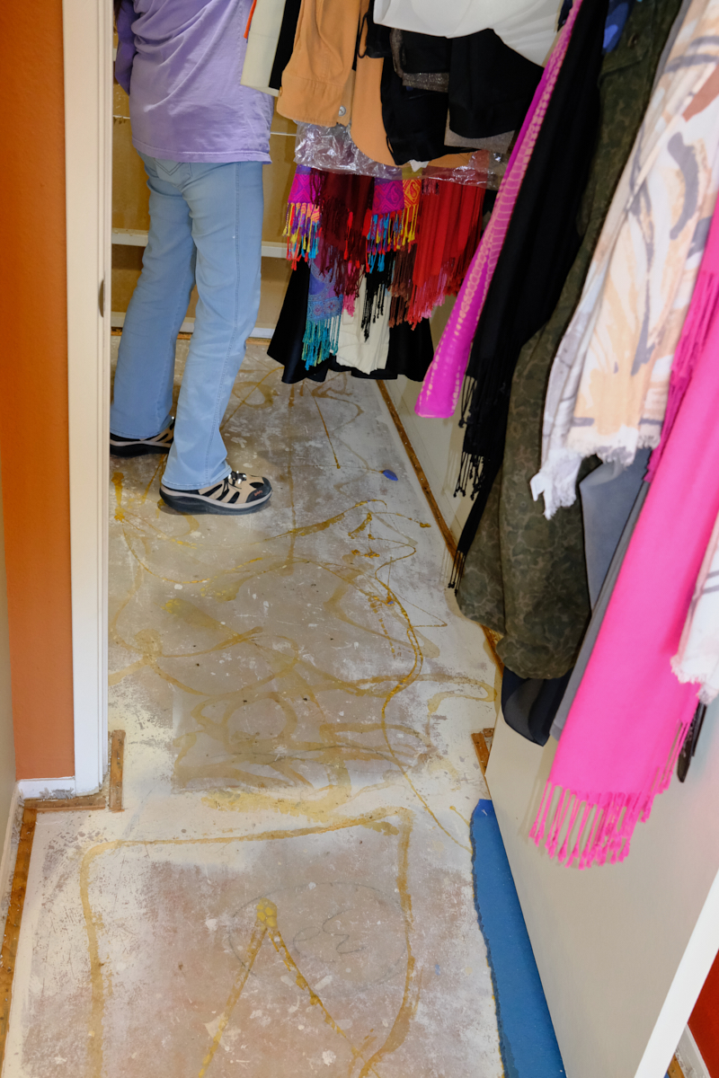 carpet in Kathleen's (converted hallway) closet was removed