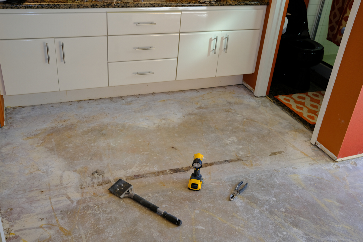 here....) were removed and and the wood flooring was pulled up