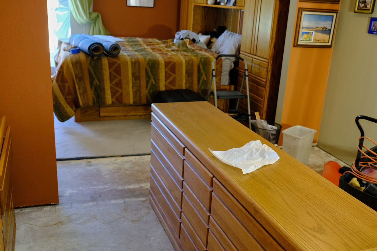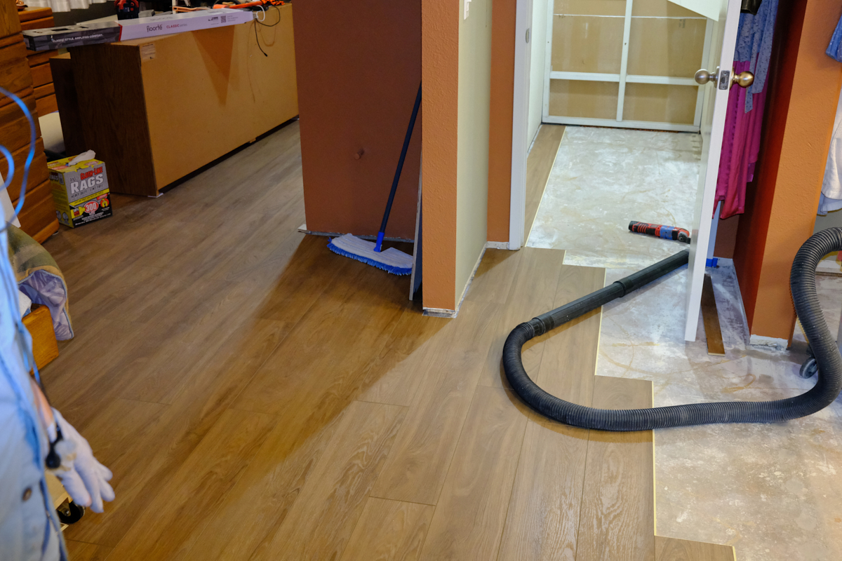 the workout room floor was scraped and the closet painted, the