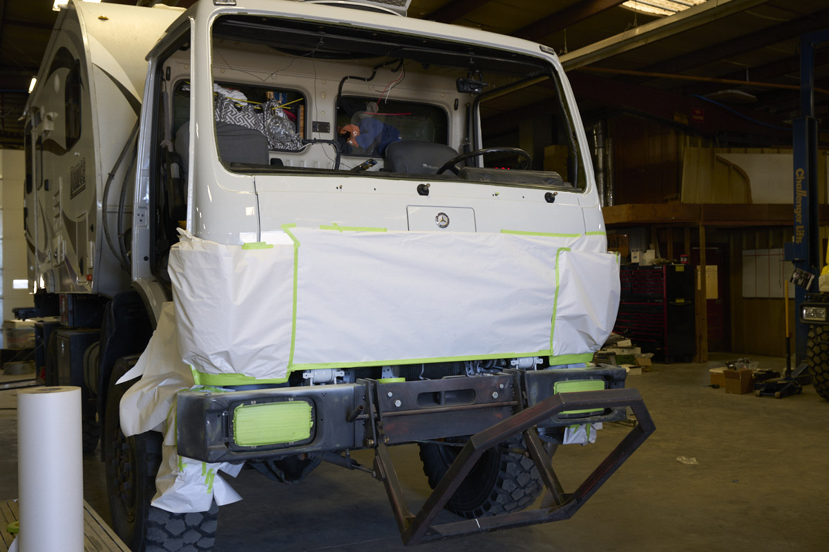 was masked and the tire carrier was prepped for black paint.