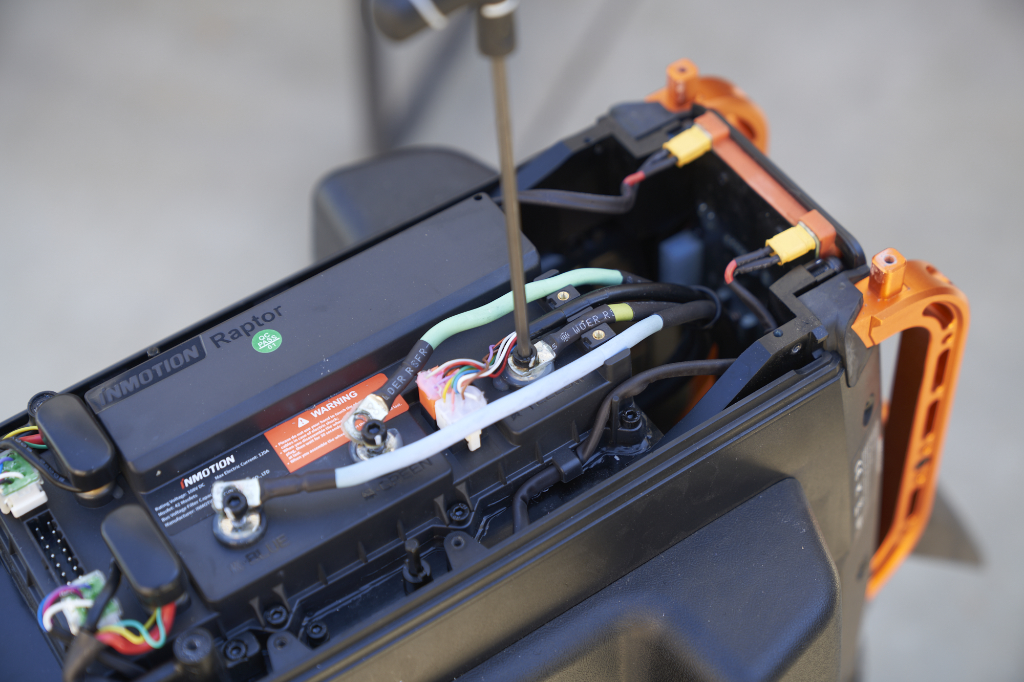 lift the battery/controller assembly off the wheel assembly and