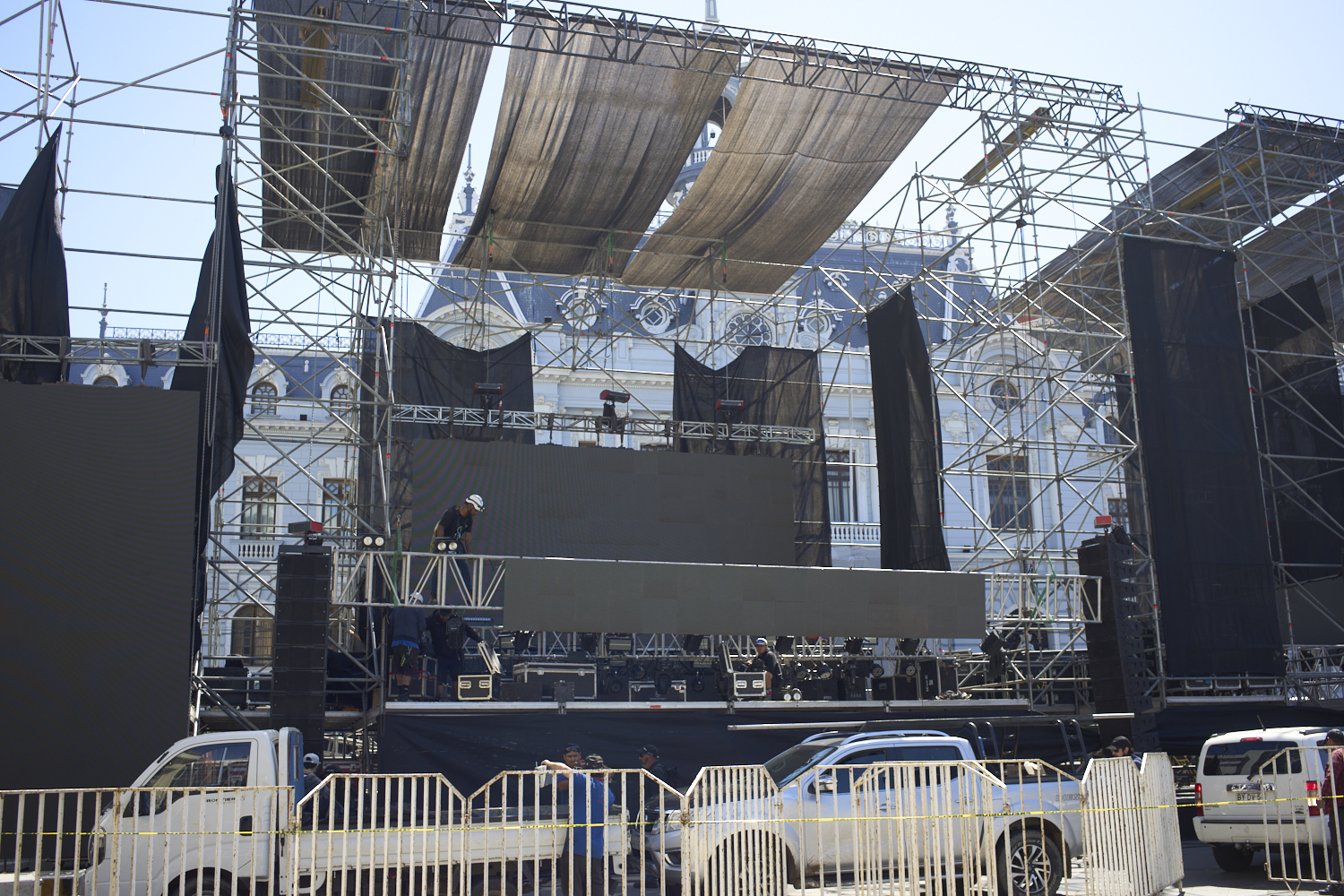 Workers are visible at the apex of the structure.