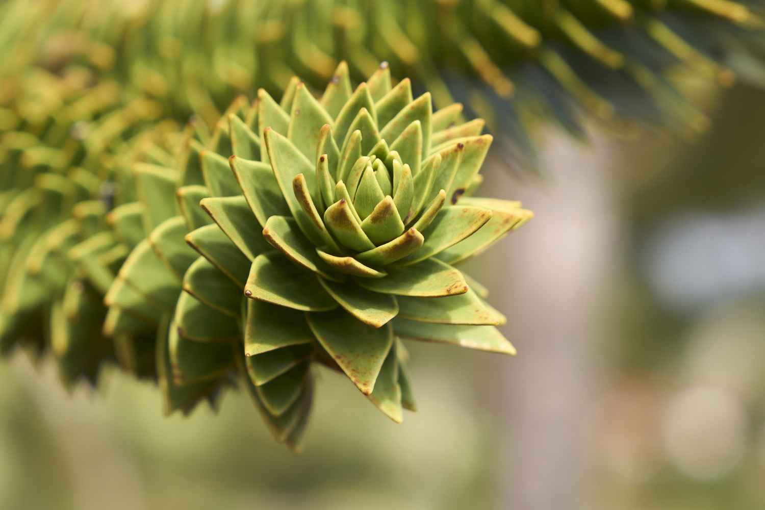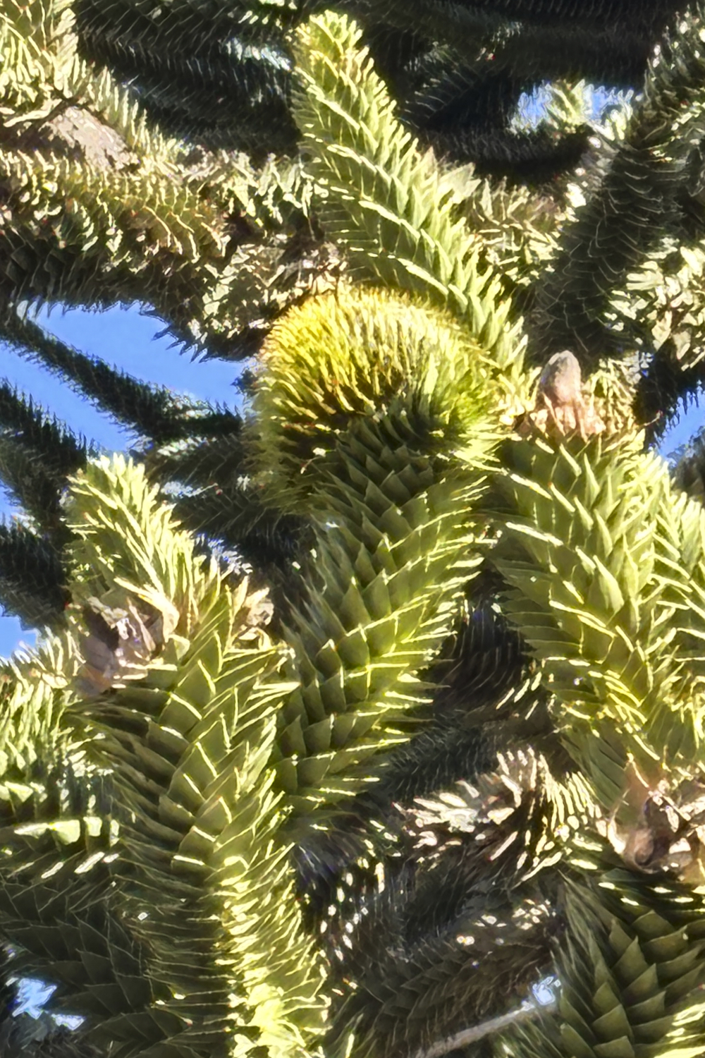 growth bud on a araucana limb. The leaves are thick, waxy