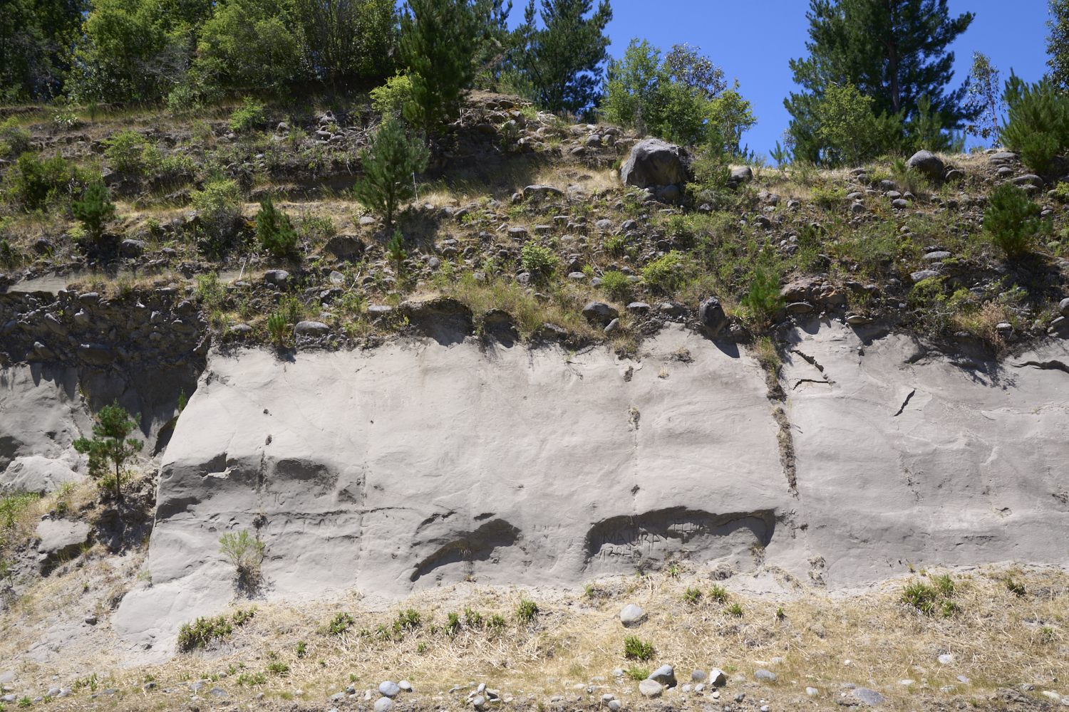area. Glacial rubble overlaid with volcanic ash overlaid