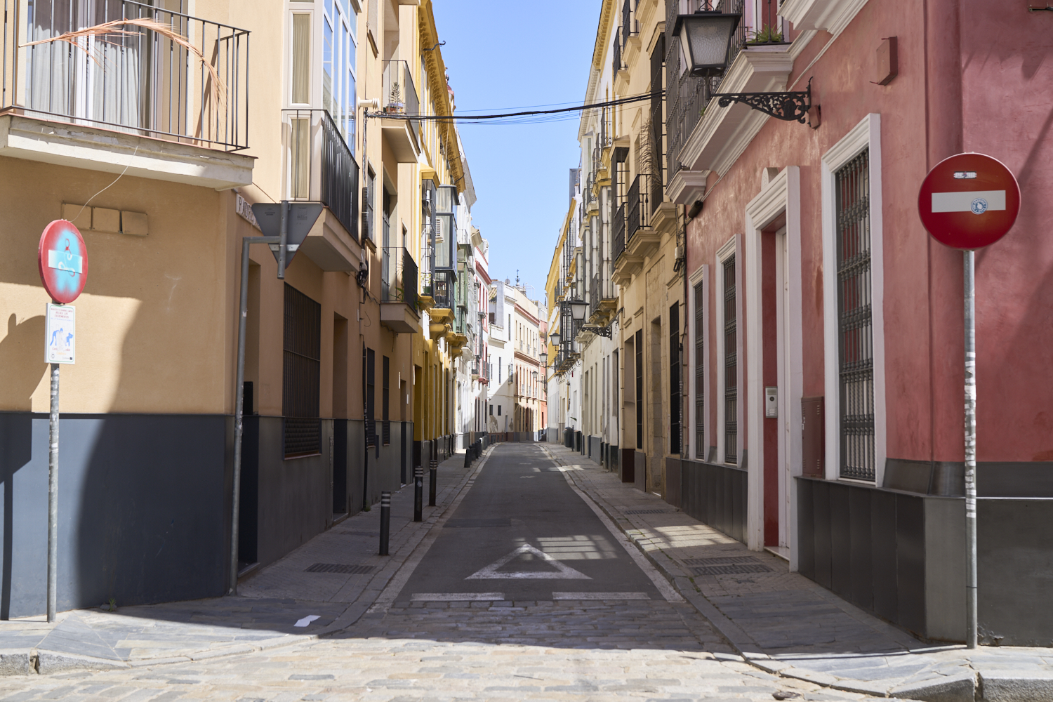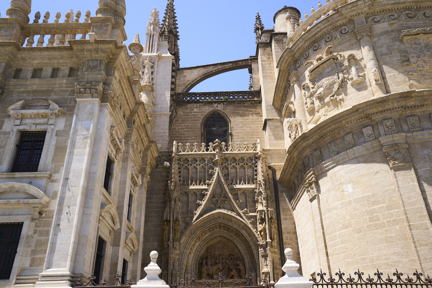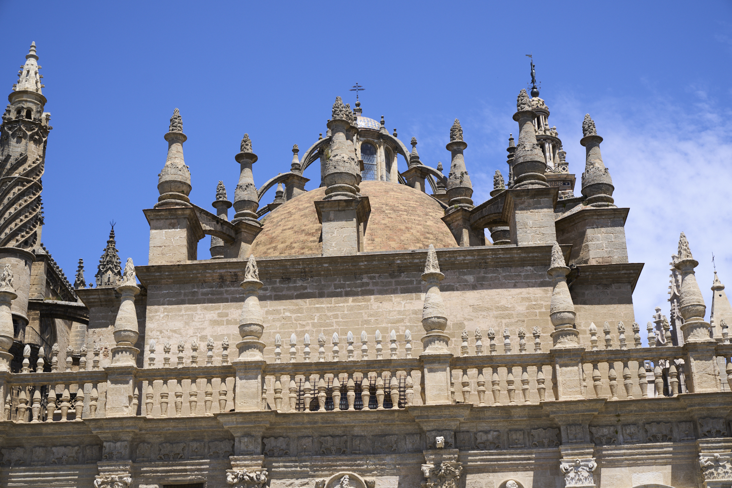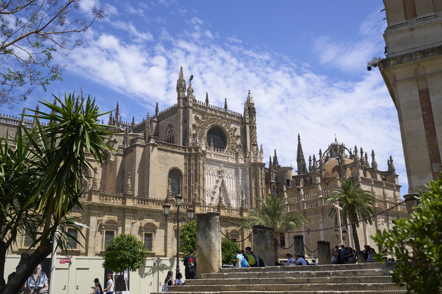 We inverted part of our trip in that we had to taxi from Gibraltar to the border, walk across the border, and then get a taxi to the Algeciras train station. From Algeciras we got the "slow train" to Seville. The trip shot a whole day, but it was reasonably comfortable except for the last, very slow leg. We got into the Santa Justa station and then got a short taxi ride to our hotel near the "center of the action" along the Guadalquivir River at the Triana Bridge. We stayed at the Bequer Hotel, which was very nice. We stayed at this hotel on one of our previous trips to Seville.