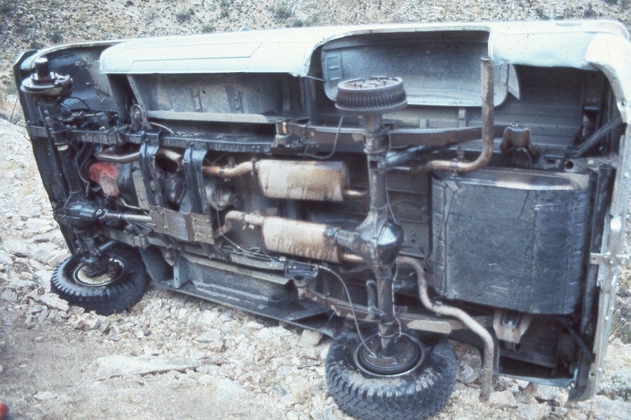 Slide 7 Underside of vehicle detailing items stripped. Note missing rear drive shaft and front shock. [Back to Narrative | Previous Slide | Next Slide ]