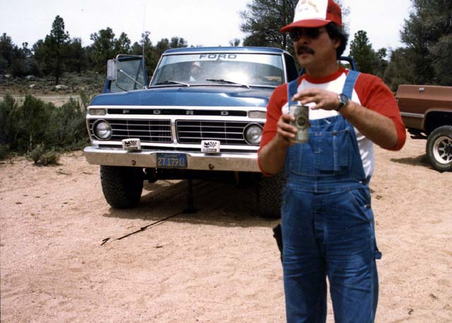 There were a number of friends of Rod's on this trip. Below, is John Hill preparing to enjoy an adult beverage in front of the blue pickup of our mechanic Rick. Rick has his jack out for reasons unknown.