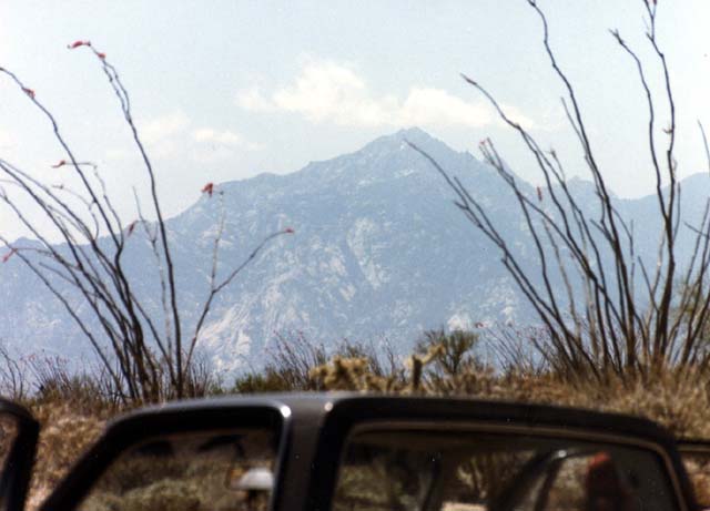 As we headed south, the steep escarpment of the Sierra San Pedro Matrir dominated the western skyline. The prominent feature on the horizon was Pichaco Del Diablo, Baja's tallest peak, visible below.