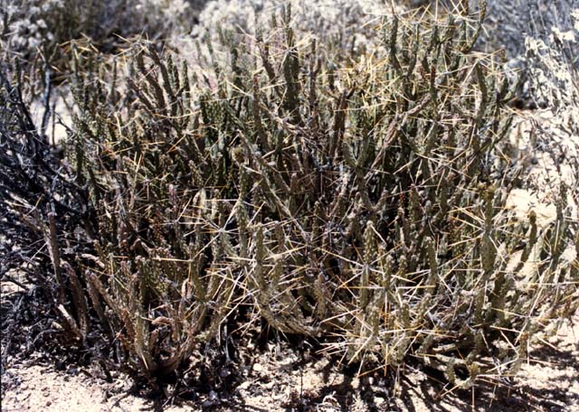 There were a variety of cactus along the trail. In addition to the Creeping Devil, there were cholla of many varieties. Below is a long-thorned pencil cholla with vicious spines.
