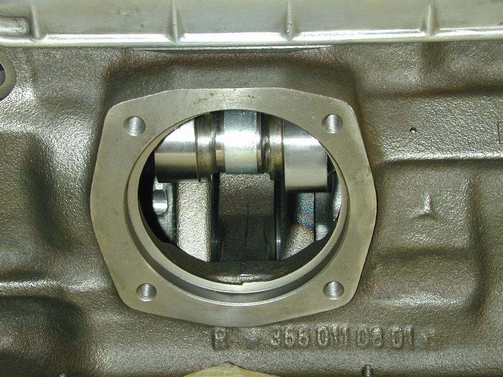 The engine is ready for attachment of the clutch assembly.