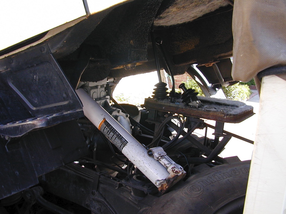 Lowering the cab. Note the shift levers on the platform.