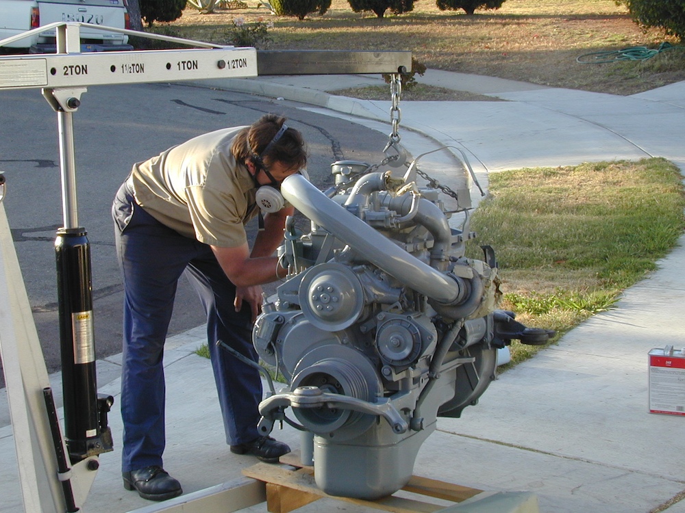 After the clutch and bell housing were added, the engine was taken out for a new paint job.