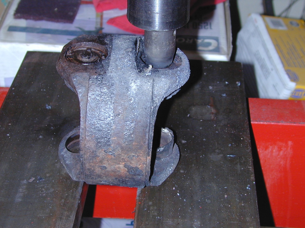 Taking the other side apart. The tool is pulling the bearings on the king pin.