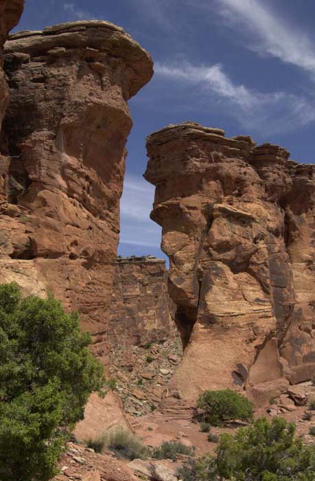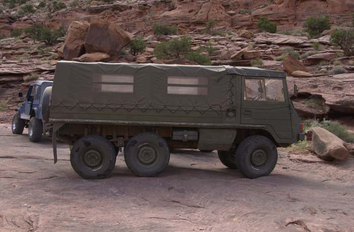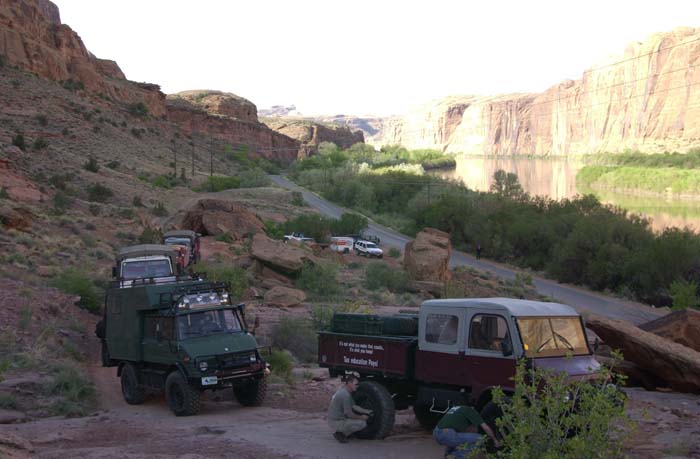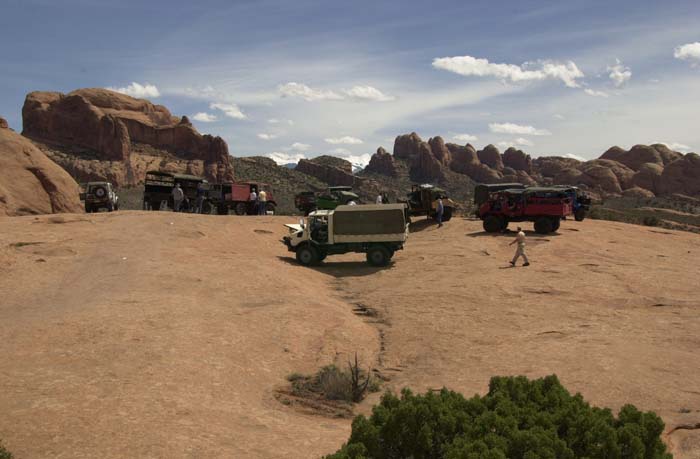 The Moab Rim is an E-ticket ride. Even with a capable vehicle like the mogs, it still requires careful attention to insure that there are no mistakes. On this trail, mistakes will be very expensive, possibly costing your life. We completed the trail with lots of daylight to spare, so we headed back to camp for cocktails and stories..