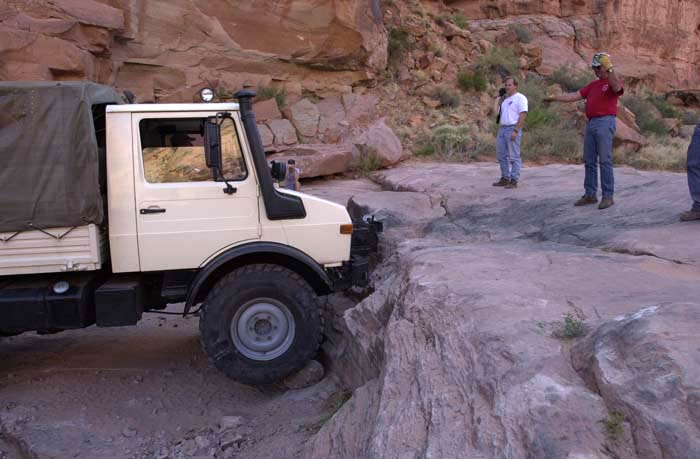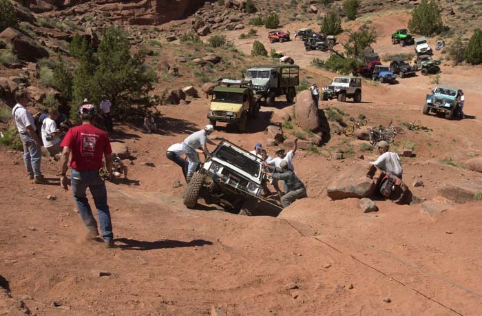 Rob Pickering tries the classic route, but failed. The jeepers try to power their way up this and sometimes take a slow running start.