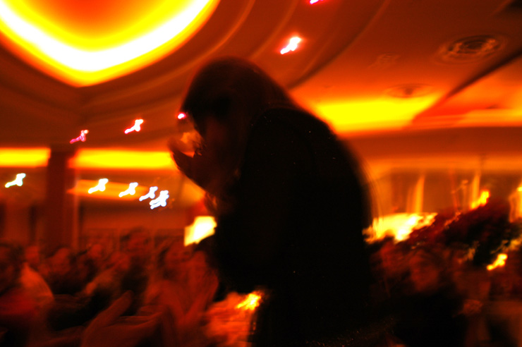 Check out the expressions of the folks at the table in the rear. Kathleen's expression is priceless as well