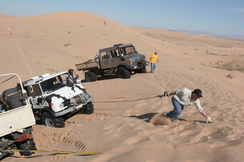 Roberto buries the winch on a down grade. The boys in the blue truck drank a whole bottle of rum earlier in the day.