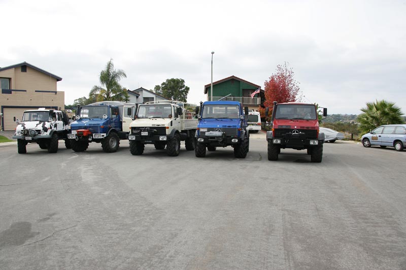 The rolling stock before the trip to the border. L to R: Serrano's 416, Mitchell's 1300L, Caid's 1300L, Espinoza's 1450, Johnson's 1550L.