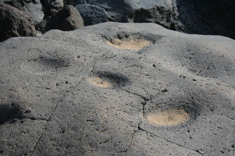 Metates (native grinding stones) in the rock around the tinajas. There were many of these.