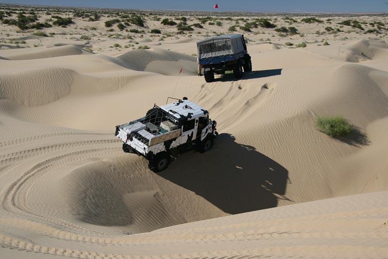 To insure the success of a major expedition in a foreign country, it is absolutely essential that the proper team of vehicles and operators was assembled. Of key importance was vehicle reliability. The size of the Altar dunes basically precludes the ability to tow a truck as dead weight. While theoretically possible, the time required to complete the winching make recovery a practical impossibility. Therefore, special attention was given to mechanical preparations prior to the trip.