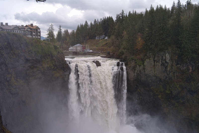 As a practical experiment, we took a drive to Snoqualmie Falls to check out the views. Here is the first view of the falls.