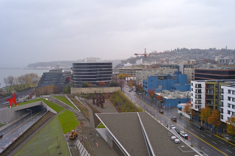 Looking north from the apartment at the Seattle Art Museum (SAM) during the rainy day.