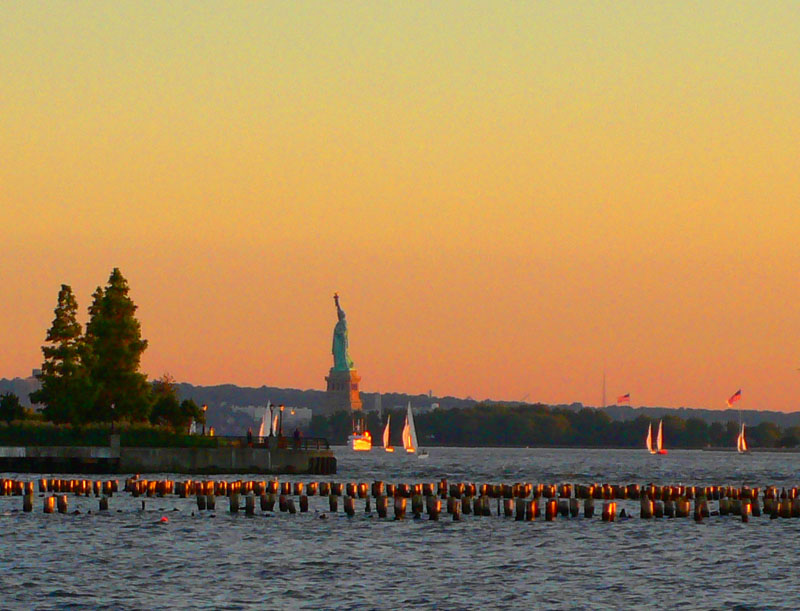Liberty at Sunset. Shot from the Hudson River hike-and-bike at Moore street.