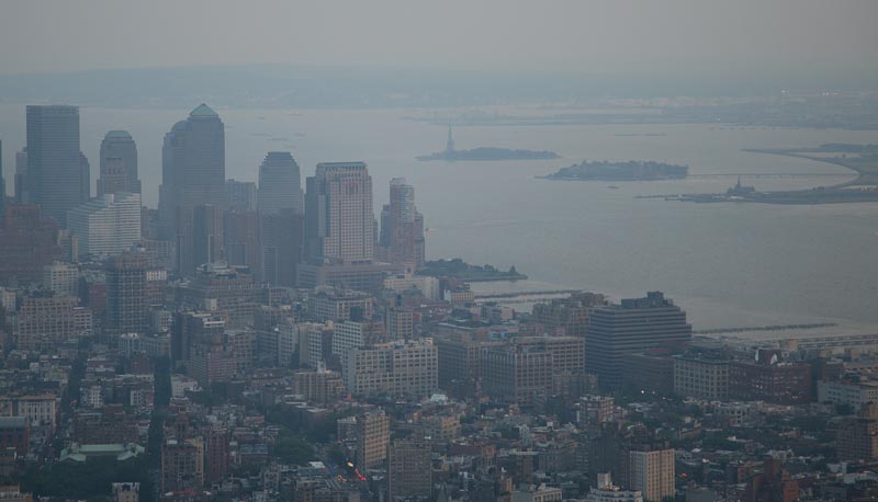 View toward Tribeca and the Statue of Liberty. Our apartment building is visible as is Ellis Island and Rockefeller Park.