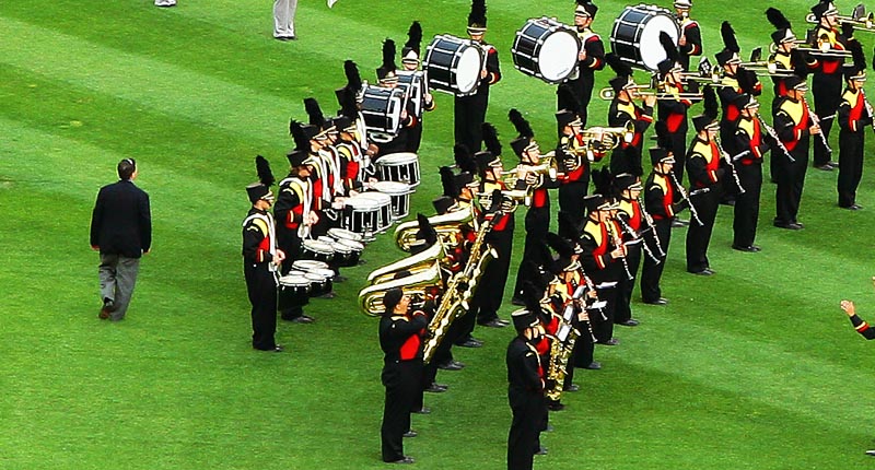 Finally, after more people watching than I really wanted, the real reason that we were at the game came on. This is the Sachem Marching Band. Taylor is Kathleen's nephew and is the second from the bottom, left row with the 4 drum set.