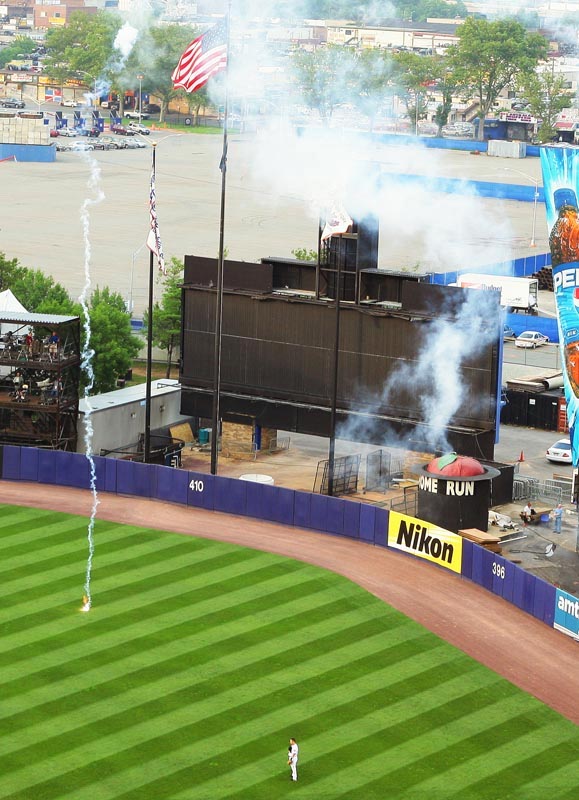On the "...bombs bursting in air" segment of the anthem, the crew set off a bomb. Complete with burning debris on the field.