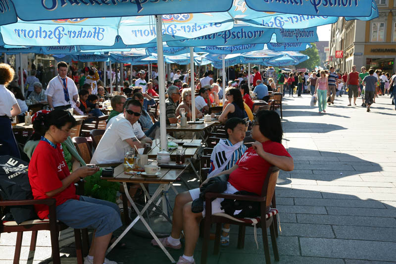 We had some tasty classic Bavarian food at an outdoor cafe. Here, the folks are digging the soccer on the big screen TV.