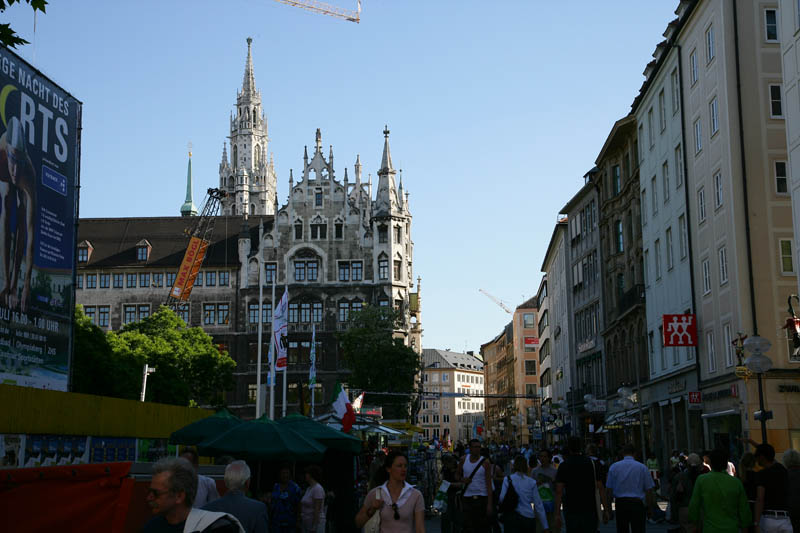 When we got to Munich, of course we were pretty jet lagged. But, after a brief nap, there was still plenty of sunlight. So, we decided to go to the town center and see the sights. The center-of-the-center is the area called the Marienplatz. The shots below are what we saw.
