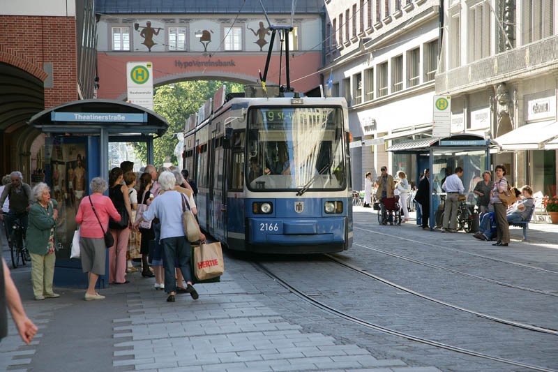 One of the mass transit devices in Munich. These trolleys were new, clean and quiet. So quiet in fact that he nearly tagged us as he went by.