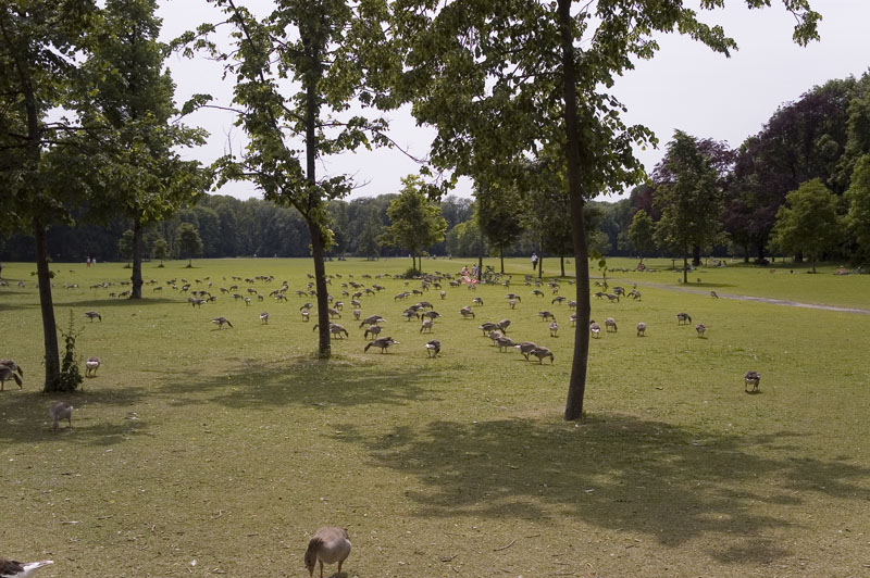 Near the lake we came upon a big flock of geese in the park. They were totally unafraid of humans, although they honked loudly when you approached.