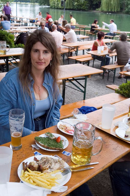 Lunch at the beer garden. This was a remarkbly expensive repast. Lunch was E35 (about $50) for 1/2 chicken, fries, a salad and a couple of beers. The beer was called Hell and it was good, even if it was mostly room temperature. For reference, the small beer is 1/2 liter, the big was a full liter. As the aliens say when they land on earth "take me to your liter".