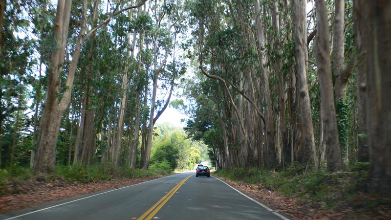 As we were driving north, we frequently went through "tunnels" of trees. This shot was taken by Kathleen while driving (not recommended for home users).