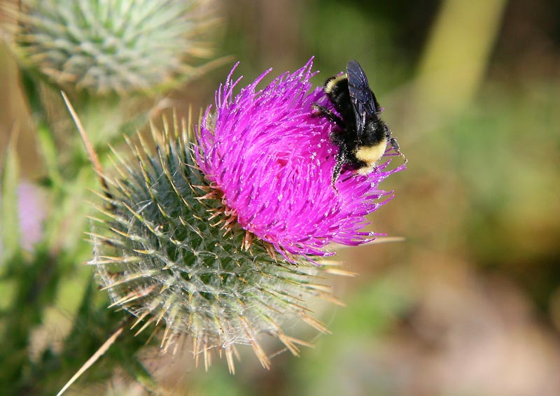 At the stop, I saw some thistles that were blooming and went to investigate. As I got closer, I saw this bee at work. As Disney would say "thistle while you work".